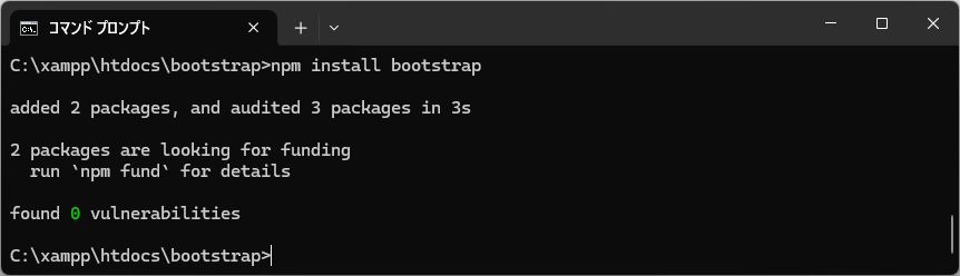 npm install bootstrap実行結果が以下のようになればOK